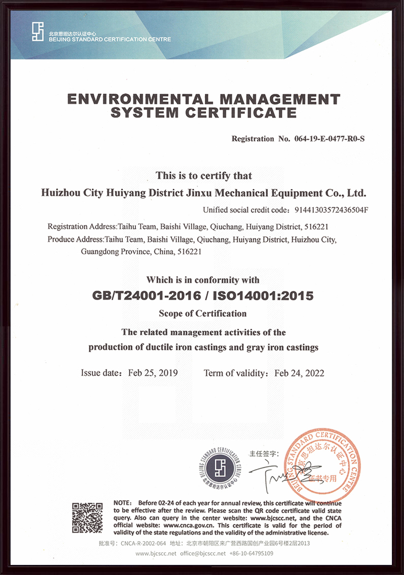 惠州市惠陽區(qū)金旭機械設(shè)備有限公司(原名深圳金泉鑄造廠),始建于1992年2月,公司坐落于惠州市惠陽區(qū)秋長白石大湖工業(yè)區(qū),是一家集模型、鑄造、機械加工于一體的綜合型企業(yè),主要生產(chǎn)高強度高韌性球墨鑄鐵、灰鑄鐵及鑄銅、鑄鋁等各種材質(zhì)及牌號鑄件。